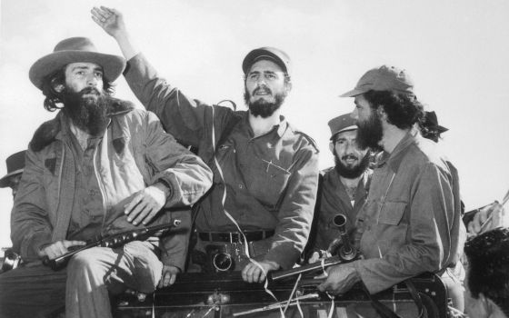 Los comandantes Camilo Cienfuegos, Fidel Castro y Huber Matos en la entrada a La Habana en enero de 1959