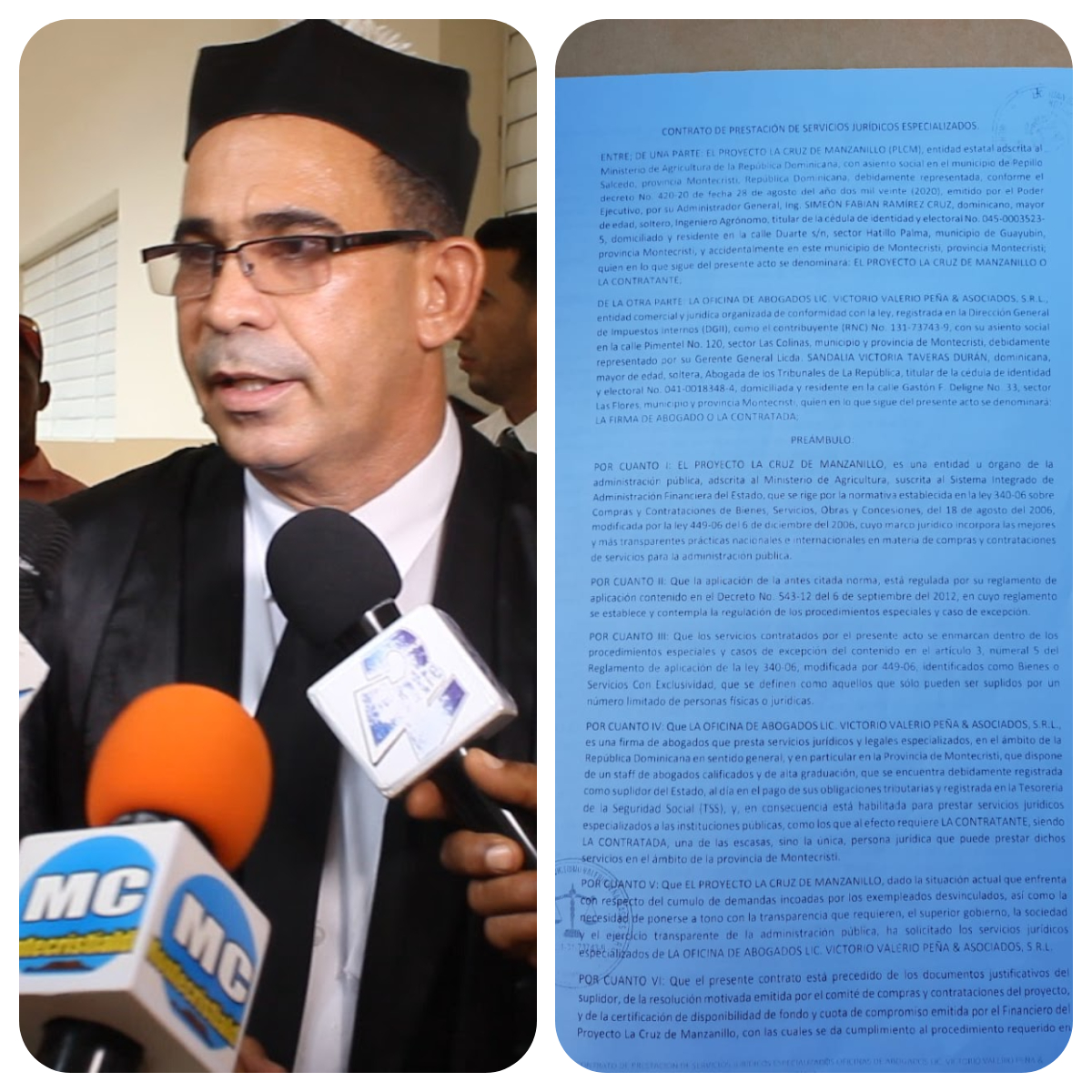 Según el referido contrato Valerio representa al Proyecto Agrario la Cruz Manzanillo, cosa extraña pues ya esa entidad tiene un cuerpo de juristas y un departamento jurídico.