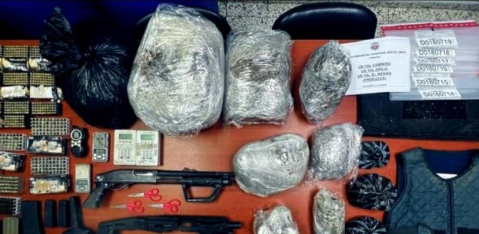 El informe dice que en el allanamiento, los fiscales e investigadores incautaron 37.3 libras de marihuana, se ocuparon, también, 640 cápsulas para pistolas calibre 9 milímetros, 35 cápsulas 40 milímetros y 48 cápsulas 5.56 milímetros; además, 3 cargadores para fusil, otros 3 cargadores para Glock, uno de ellos Caracol, con capacidad para 50 cápsulas; así también una escopeta calibre 12 y un porta fusil.