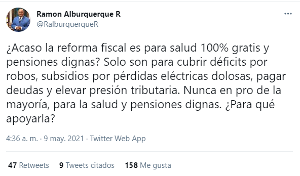 Si no se va a mejorar la salud pública ni las pensiones, no apoyo una reforma fiscal, dice Ramon Alburquerque.