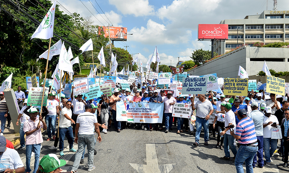 En el marco de la conmemoración del Día Internacional del Trabajo, decenas de empleados pertenecientes a distintos grupos y asociaciones sindicales, marcharon en la capital dominicana, en reclamo de que se respeten los movimientos sindicales y por mejores condiciones laborales.